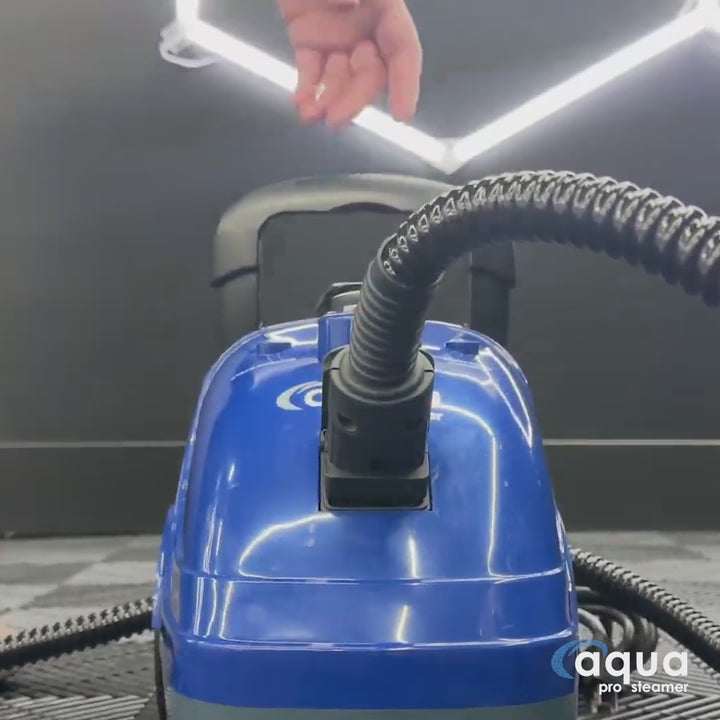 The Aqua Pro Steamer has been designed as a commercial-grade car detailing steam cleaner. Clean and sanitize a variety of surfaces without the use of harsh chemicals Adjust the steam intensity to match the job, and use the versatile attachments to help tackle the toughest jobs. Great to clean the exterior and interior of cars, trucks, and boats. Save time cleaning the road oil off the cars or trucks' front grill. Easily remove built-up grease and grime on door jams. The steamer leaves no smears or smudges when cleaning car windows. A safe way to break down grime and brake dust on the rims. The Aqua Pro Steamer for car detailing, is the best way to clean vinyl seats, and quickly breaks down and loosens the dirt on carpets and floor mats. Quickly and easily remove dirt, debris, and dust from door panels and the center console. Eliminates bacteria, mold, mildew, fungus, germs, dust mites, and allergens without the use of chemicals.